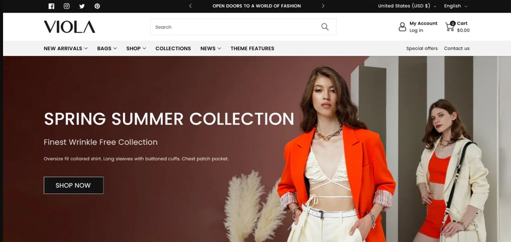 Viola is a highly regarded Shopify theme that stands out for its stylish and elegant design, making it an excellent choice for clothing stores looking to enhance their online presence. This theme offers a sophisticated aesthetic that can effortlessly elevate the visual appeal of any fashion brand, presenting products in a manner that is both enticing and accessible to potential customers.
