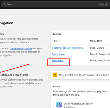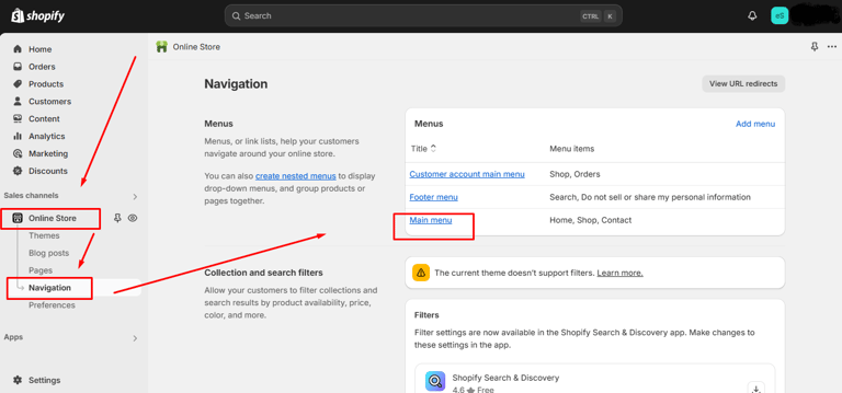Access Navigation Settings: Log into your Shopify admin panel and click on “Online Store.” From there, select “Navigation.”